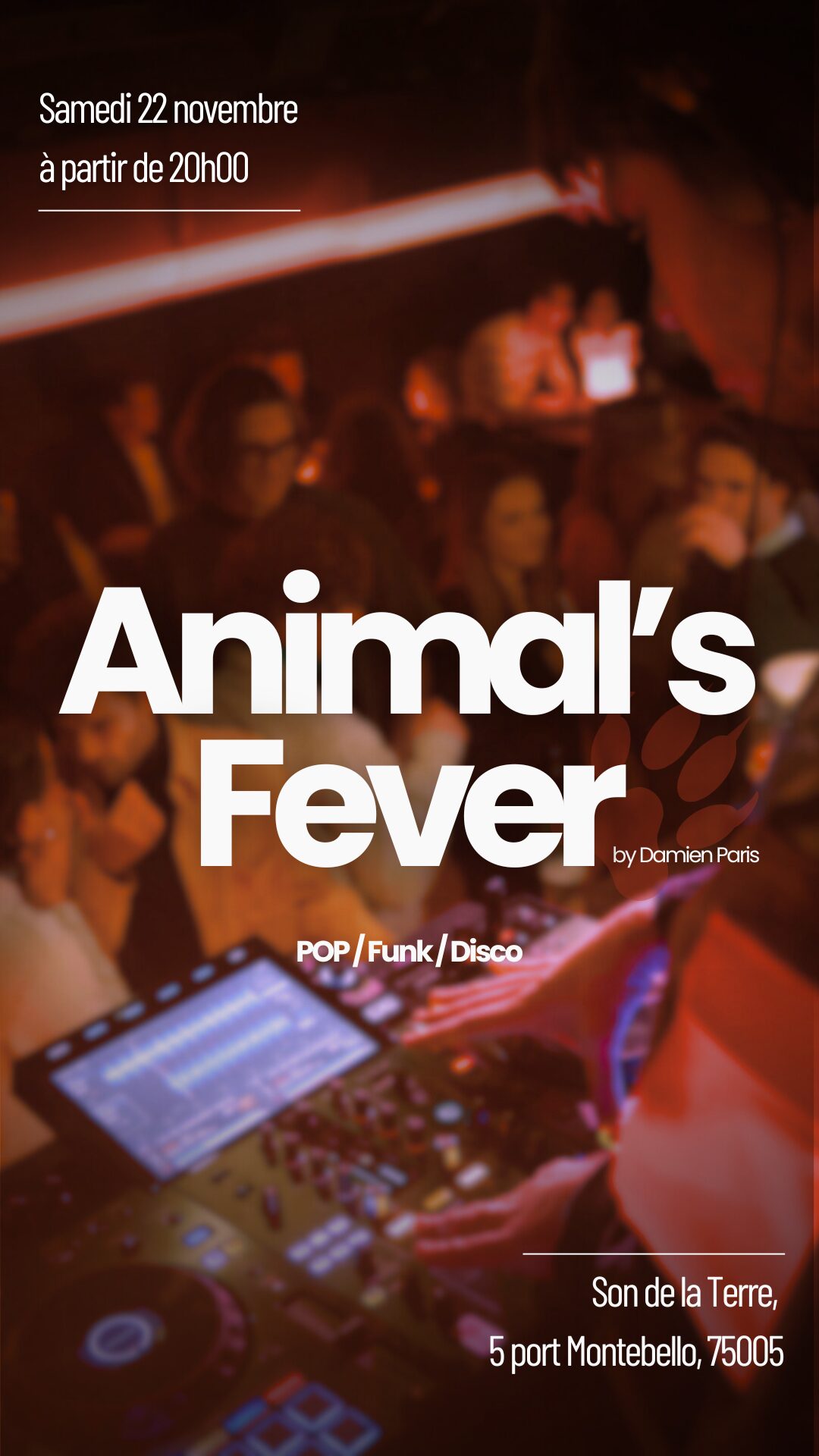 Nous vous donnons rendez-vous le samedi 22 novembre pour une soirée Pop, Funk et Disco.